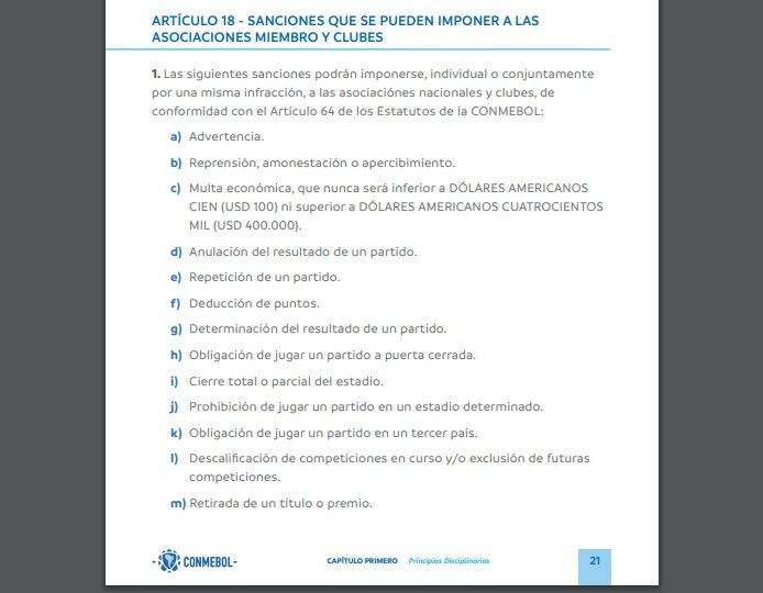 Articulo 18 de Conmebol Captura de pantalla del reglamento