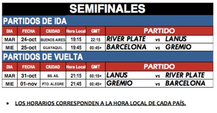 Cronograma semifinales – Copa Libertadores – conmebol.com