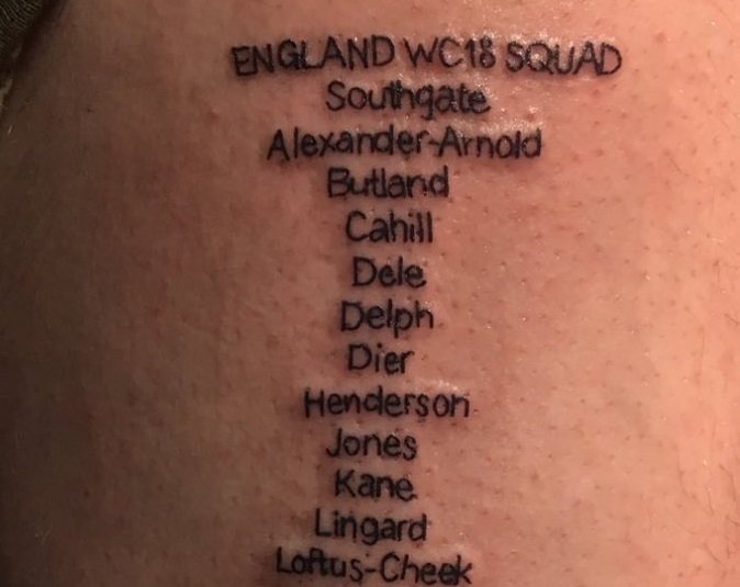Dan Welch se tatuó la lista de convocados de Inglaterra – Mundial Rusia 2018 – Twitter (@welchyyyy)