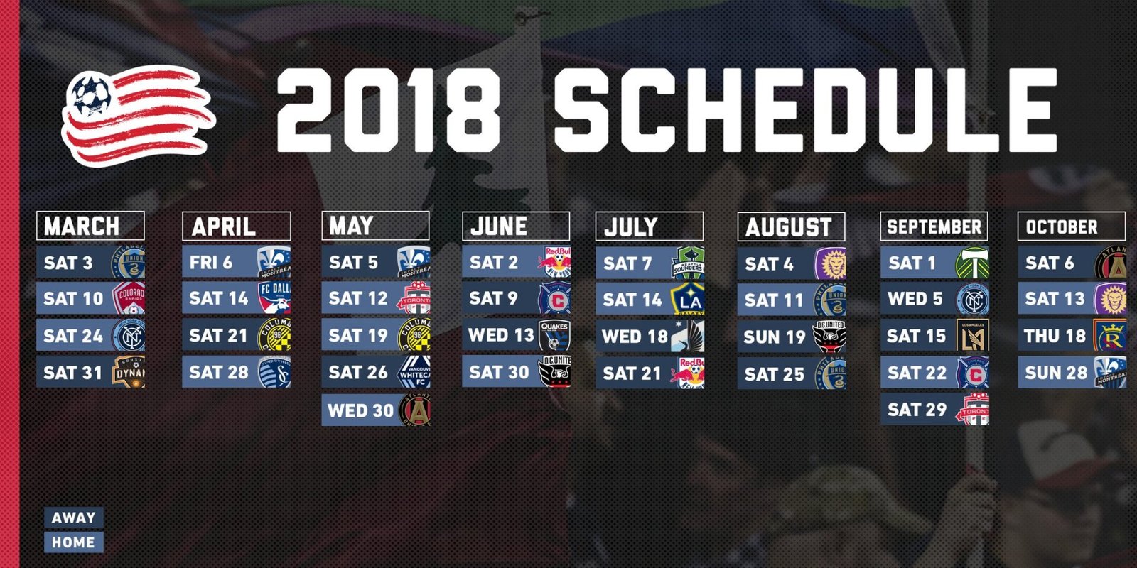 New England Revolution calendario 2018 Twitter @NERevolution